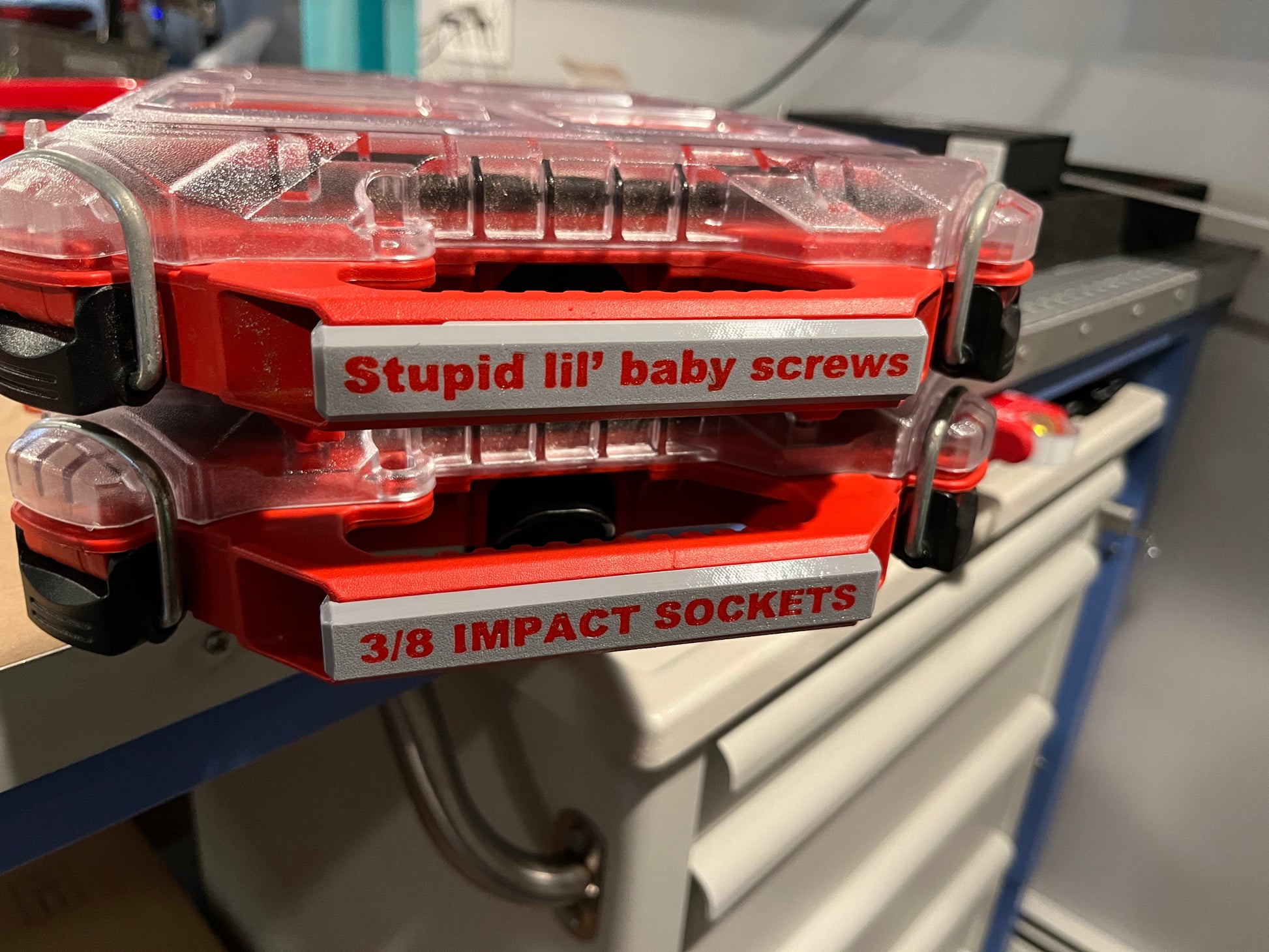 We now offer labels to identify which tools are in which case. Labels are available in black or gray. Please see pictures below for color reference, but the actual label for this insert will say DRIVER BITS.