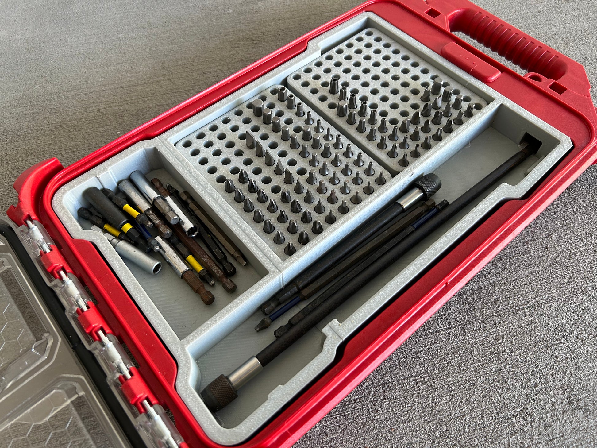 The design consists of the main tray insert and then additional inserts that slot in place that hold the smaller length driver bits. You can use one, both or none of these extra trays, it's all up to how you want to structure your kit. Regardless, you get the files for all of it!