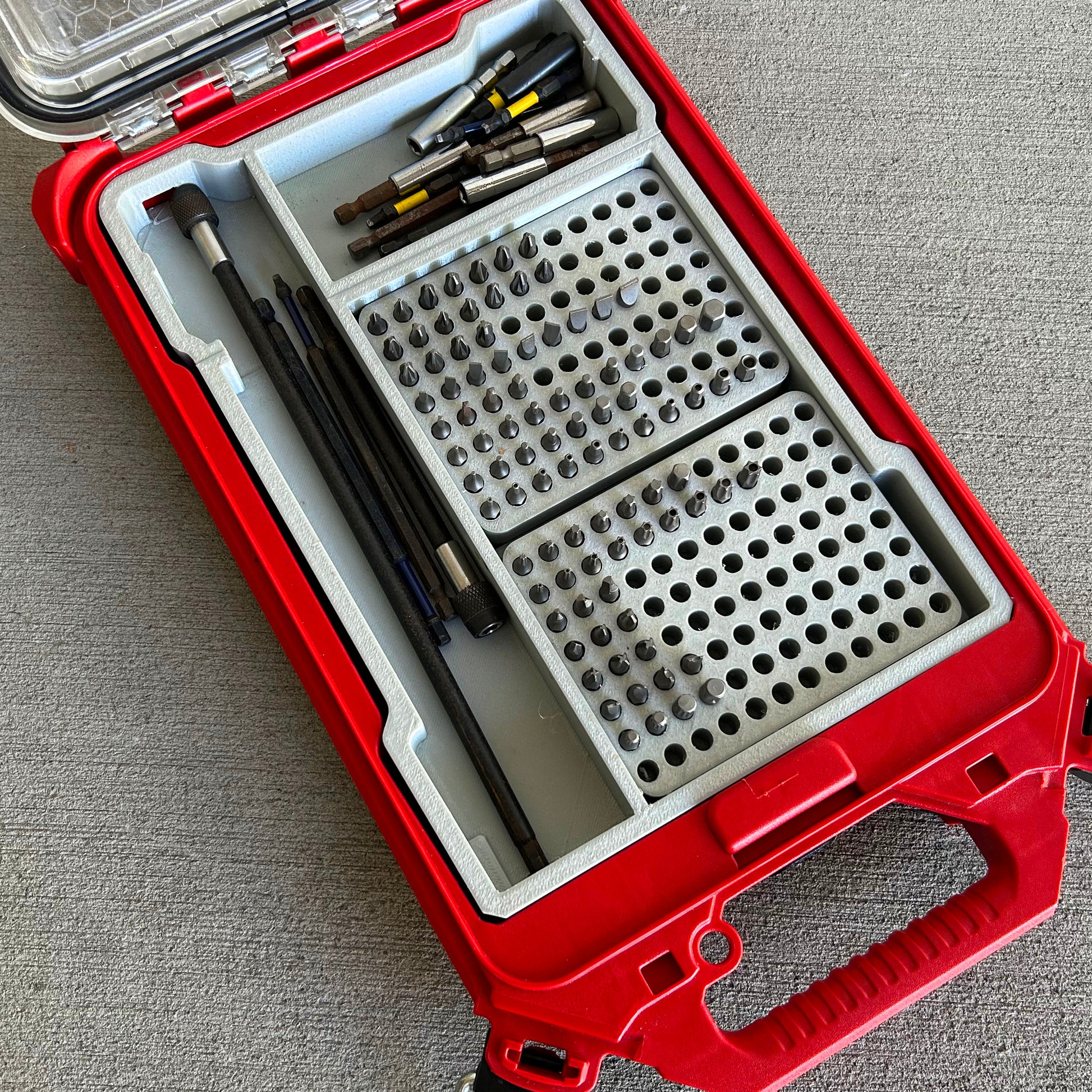This is a custom insert that I have designed to fit your Milwaukee Packout to better store your driver bits! Milwaukee 48228436 PACKOUT Low-Profile Compact Organiser.