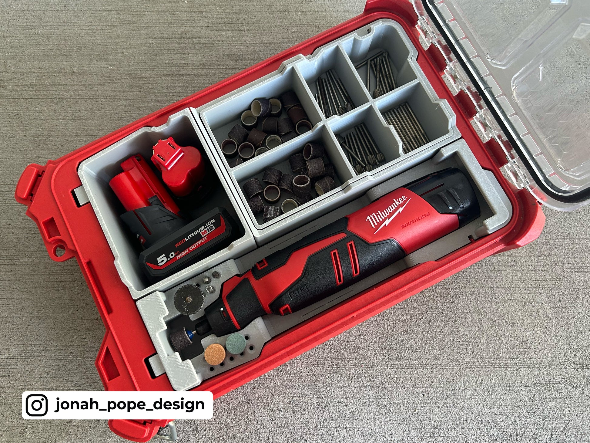 No Loose Dremel Bits - Jonah designed the inserts to follow the contours of the Packout lid when closed. You can rest assured you won't have your Dremel bits jumping over dividers whilst in transport or carrying your Packout.