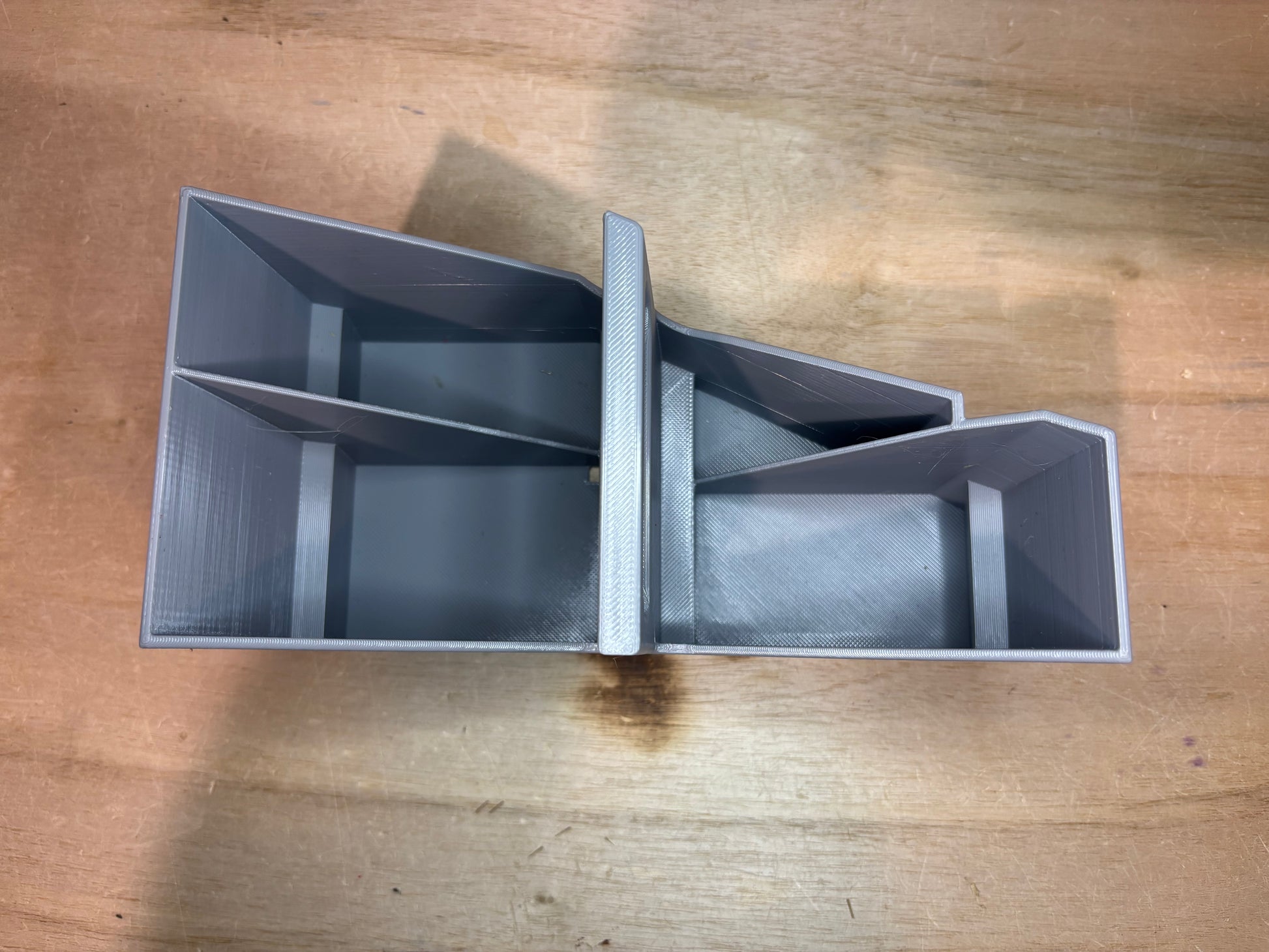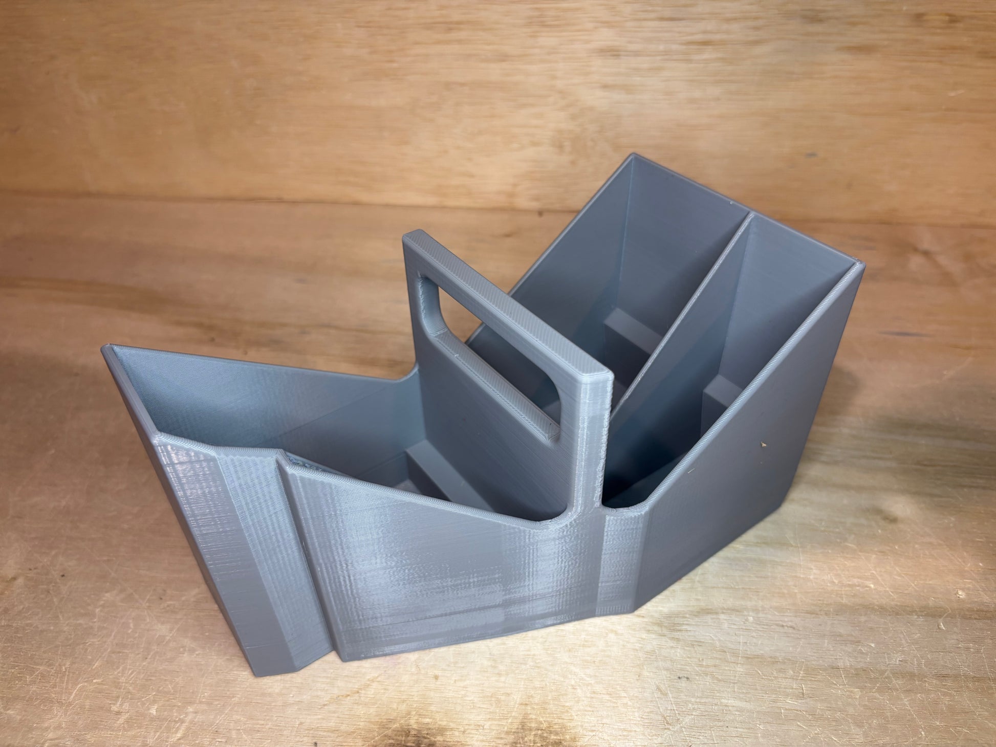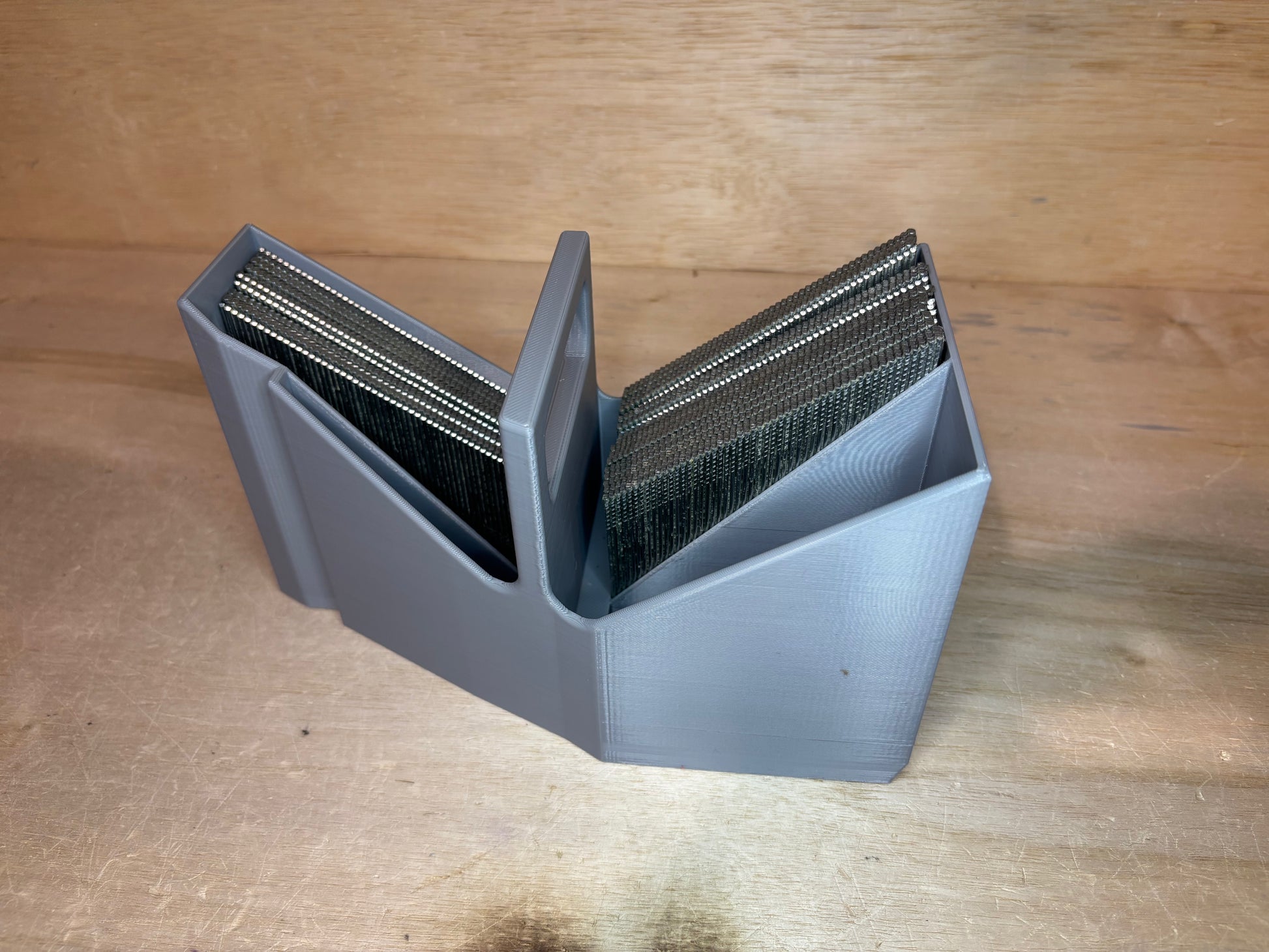 - Different-sized slots can each hold about 35, 30, and 25 sticks of nails