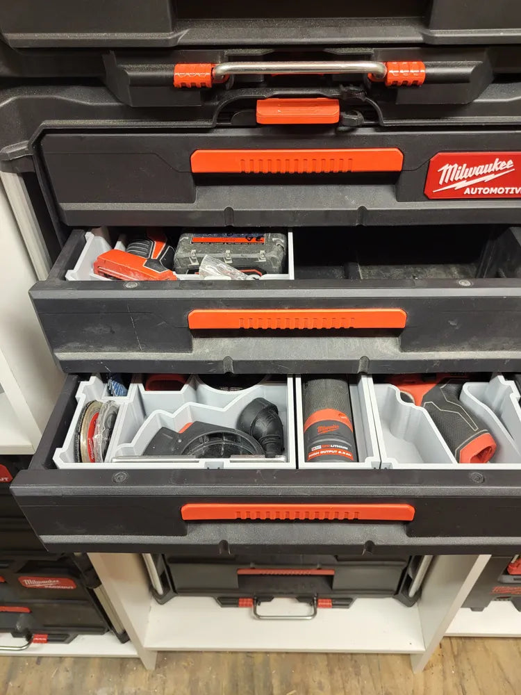- Milwaukee 3-Drawer Packout 48-22-8443 (takes up half a drawer side to side)