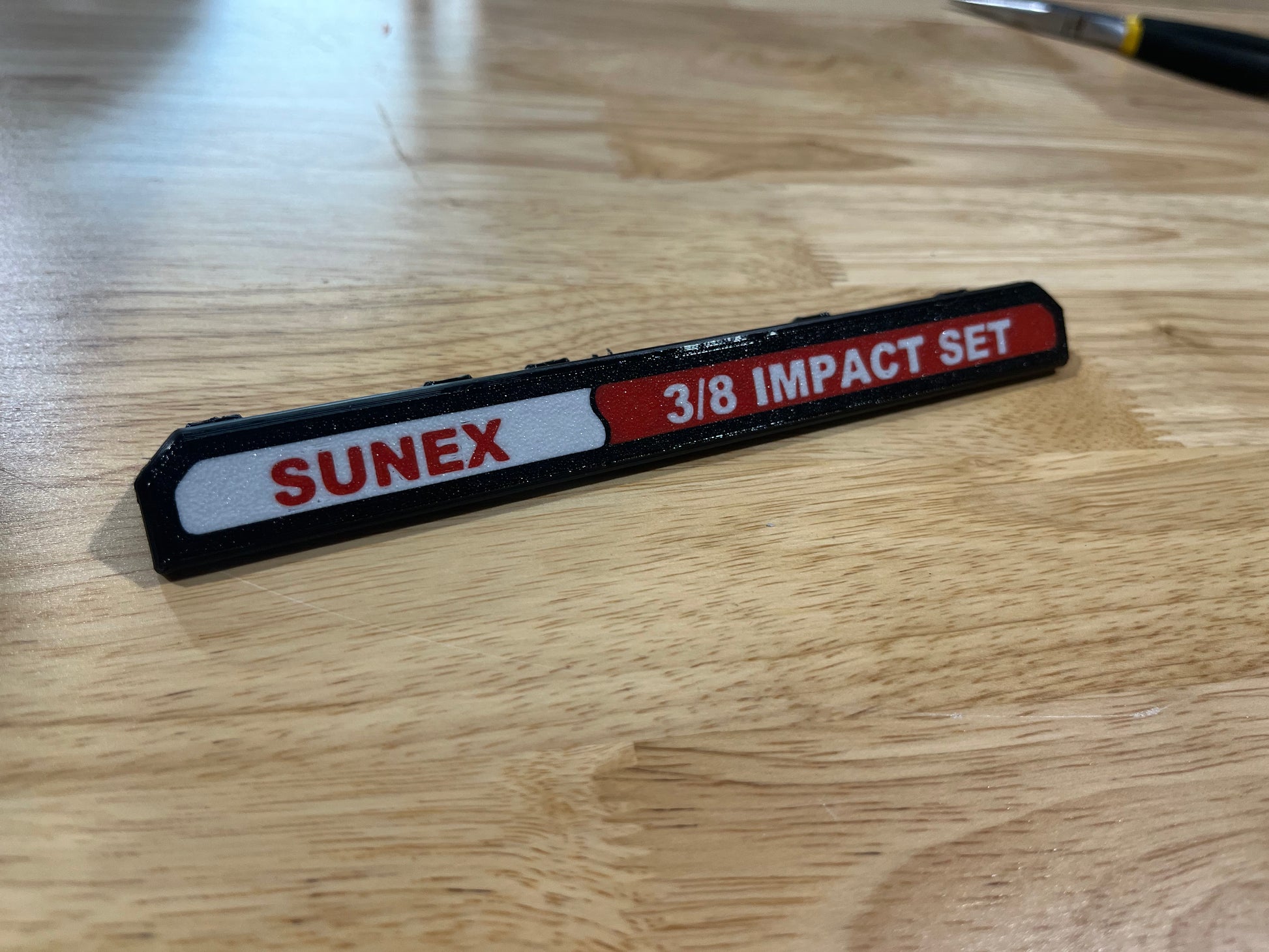 We also make drawer handles that say SUNEX 3/8 IMPACT SET on them which can be purchased at a discount with the insert. Our other drawer handles can be purchased here: