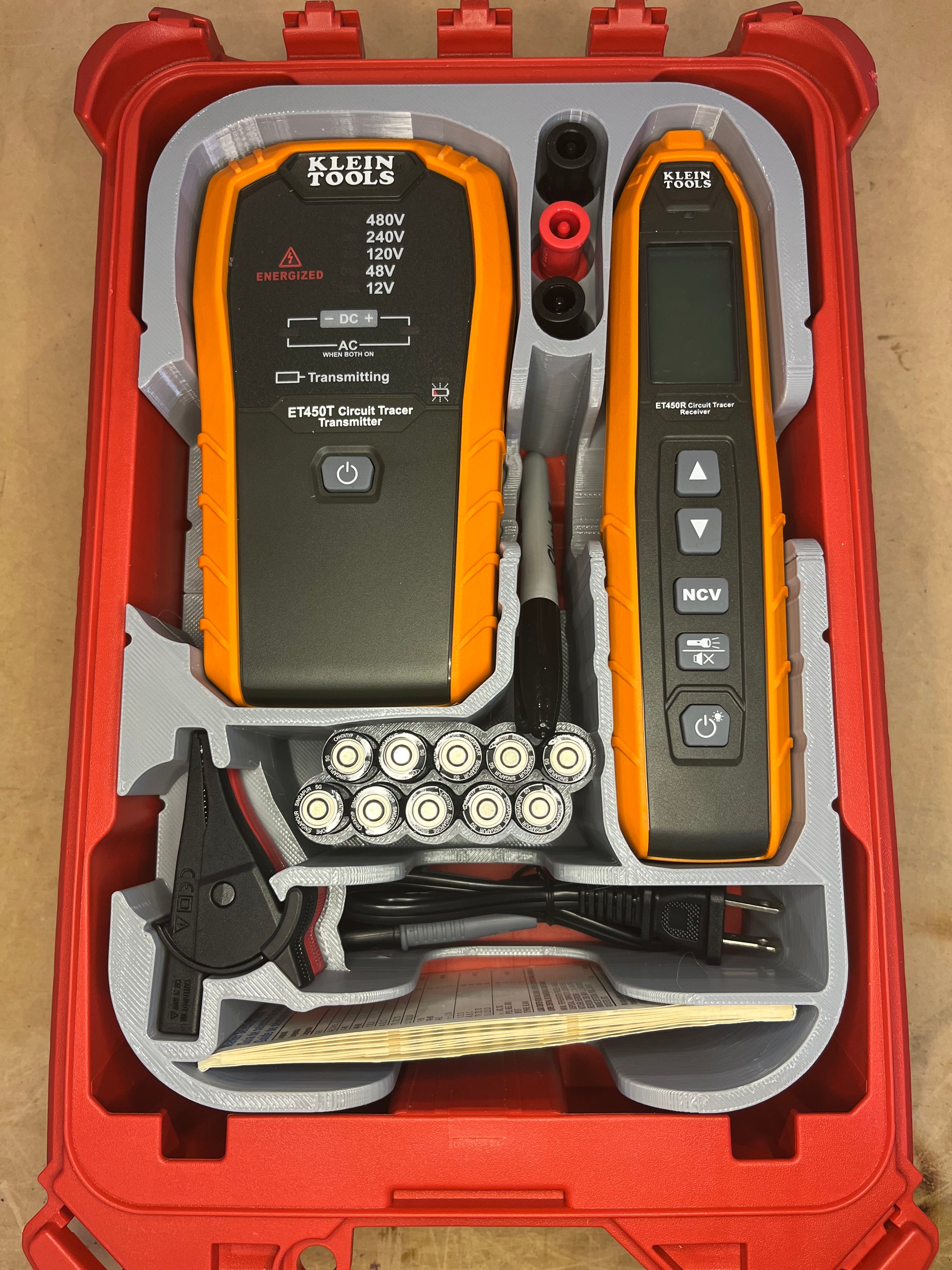 This insert can hold the Klein ET450 Circuit Tracer Kit with extras: