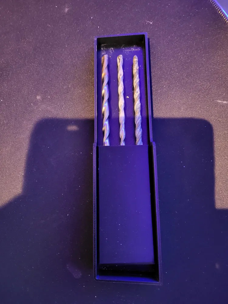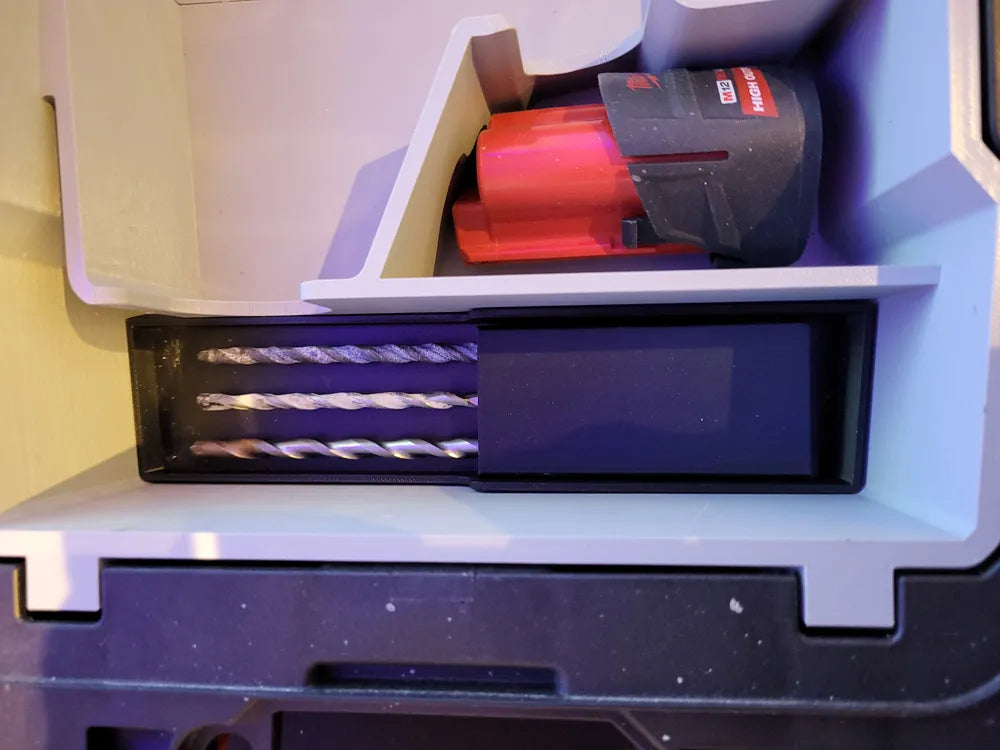 Here's a simple bit holder for 3 drill bits for the M12 SDS insert for the compact organiser that I designed, it allows easy access to the bits but also holds them secure so they don't jump around while transporting the organiser.