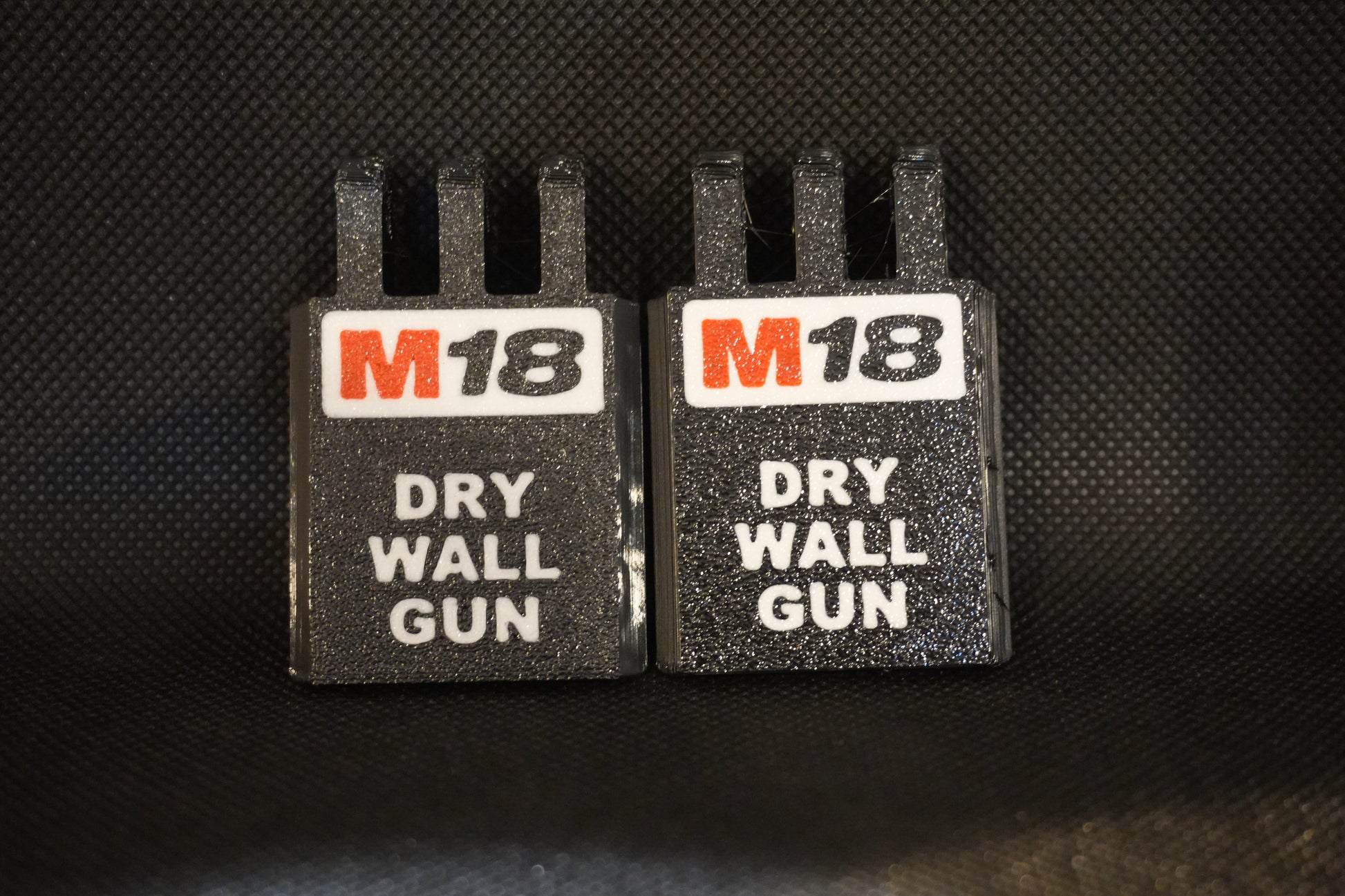 Latches print in black with white text. All latches on this page have graphics on them. For latches with tool brand names, please click here.
