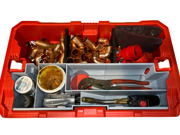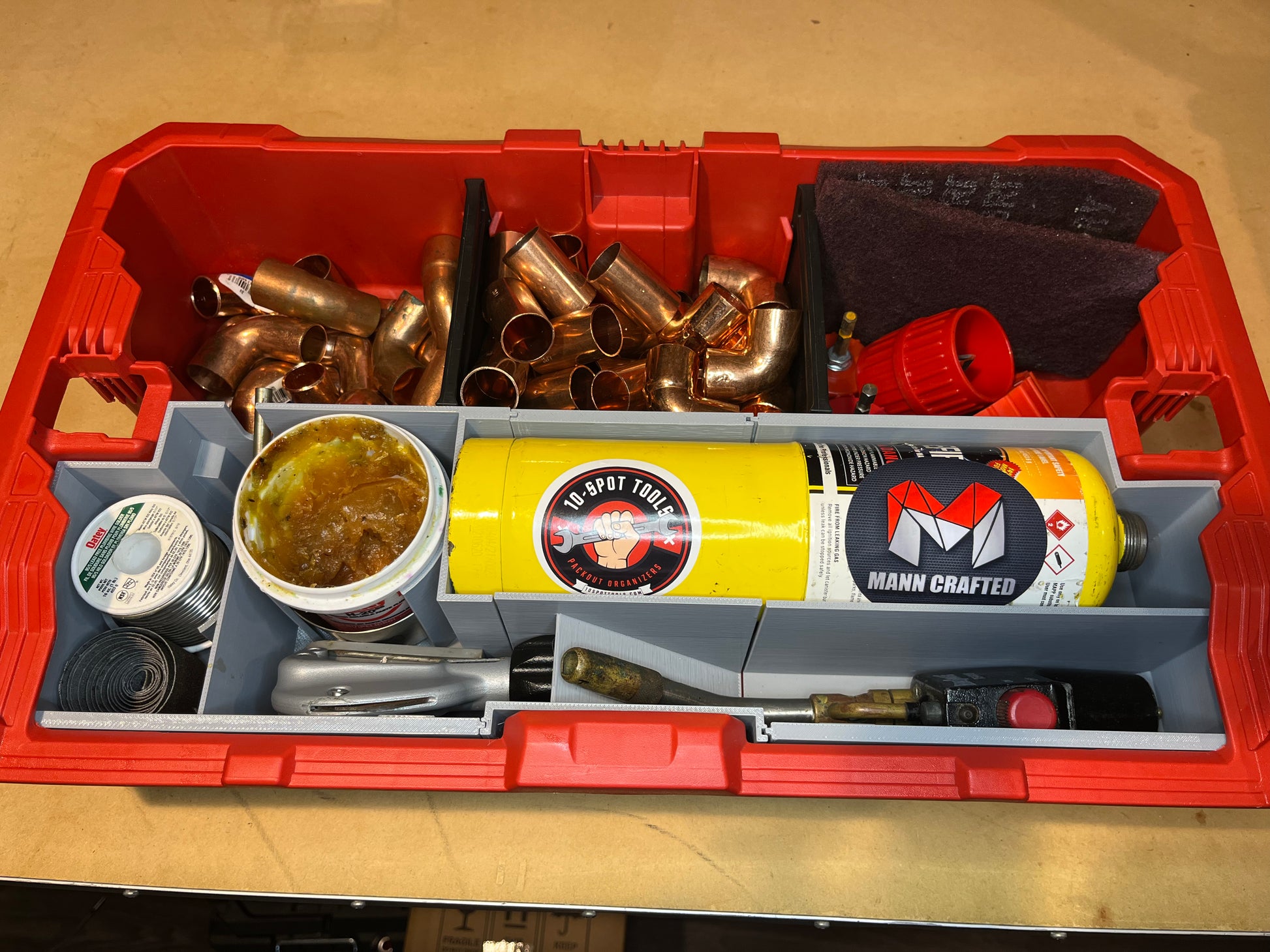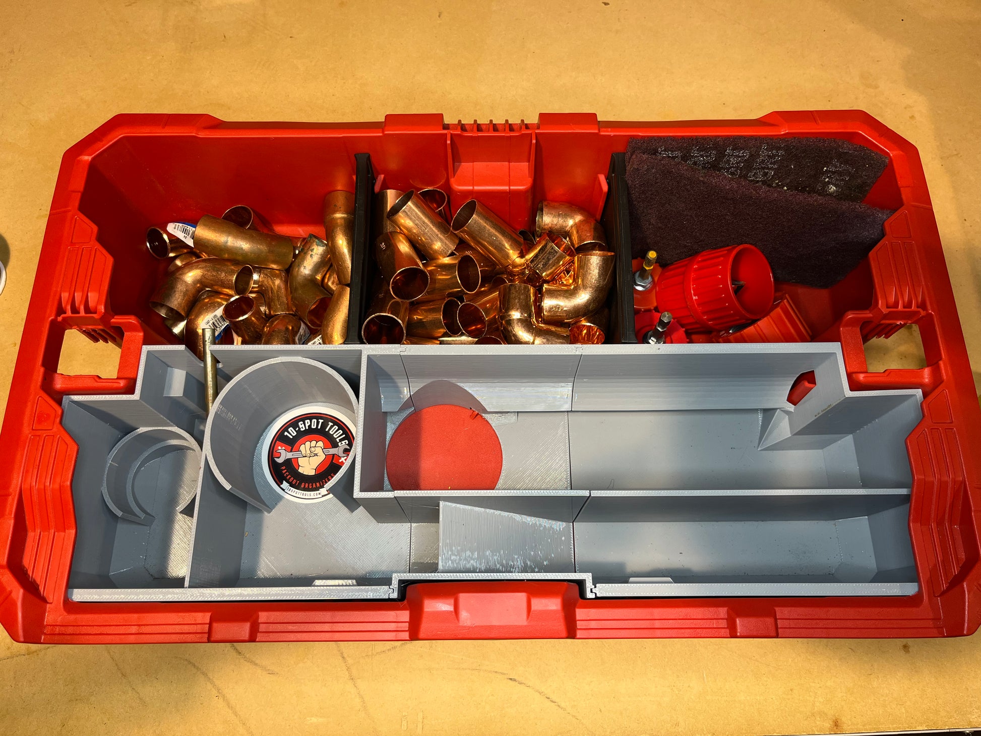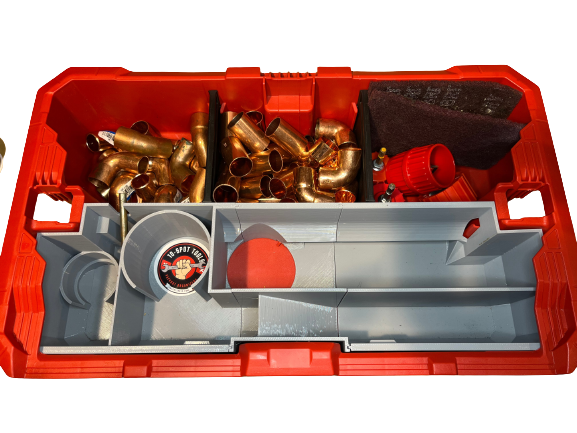 It also has slots to accept the small dividers that come with the Packout tray. You can use these to divide the other half of the tray for fittings or other miscellaneous plumbing items.
