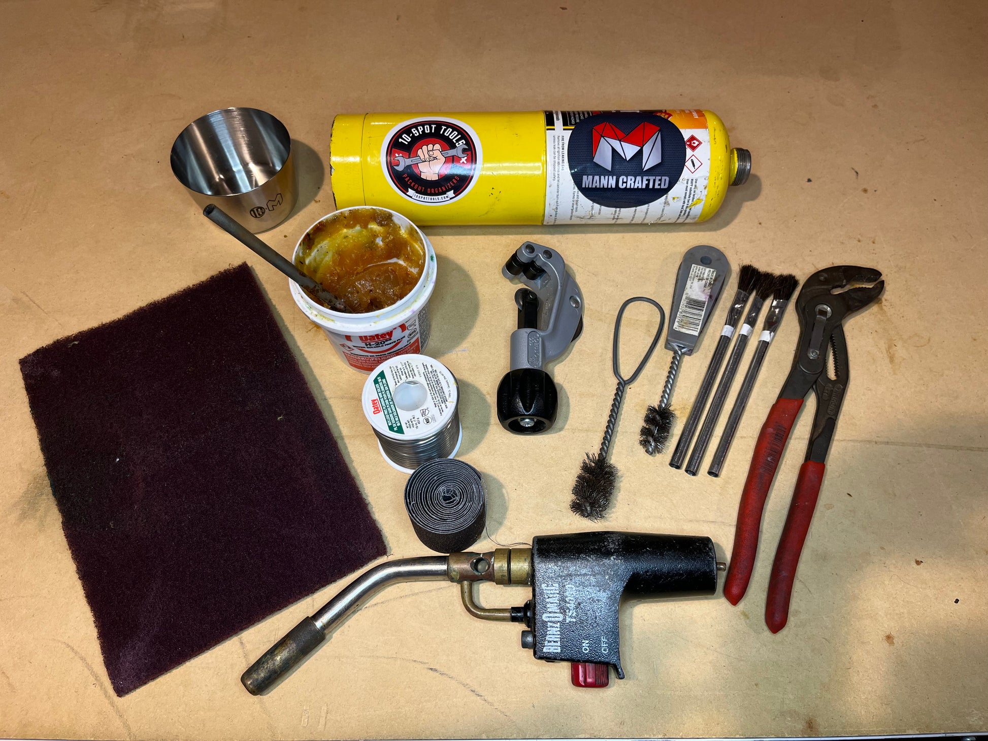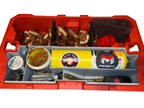It can hold everything you need for sweating copper. It has dedicated spots for: