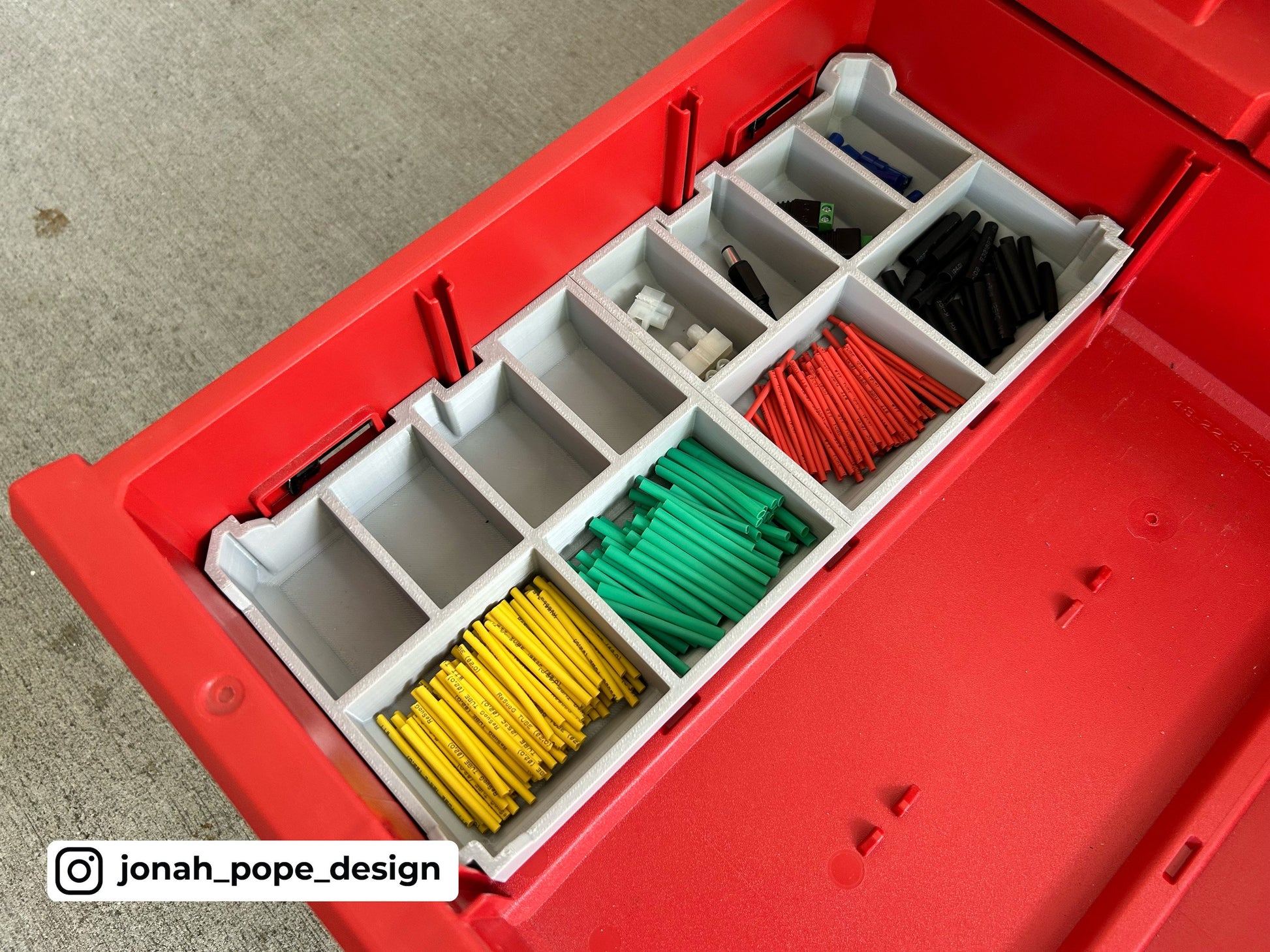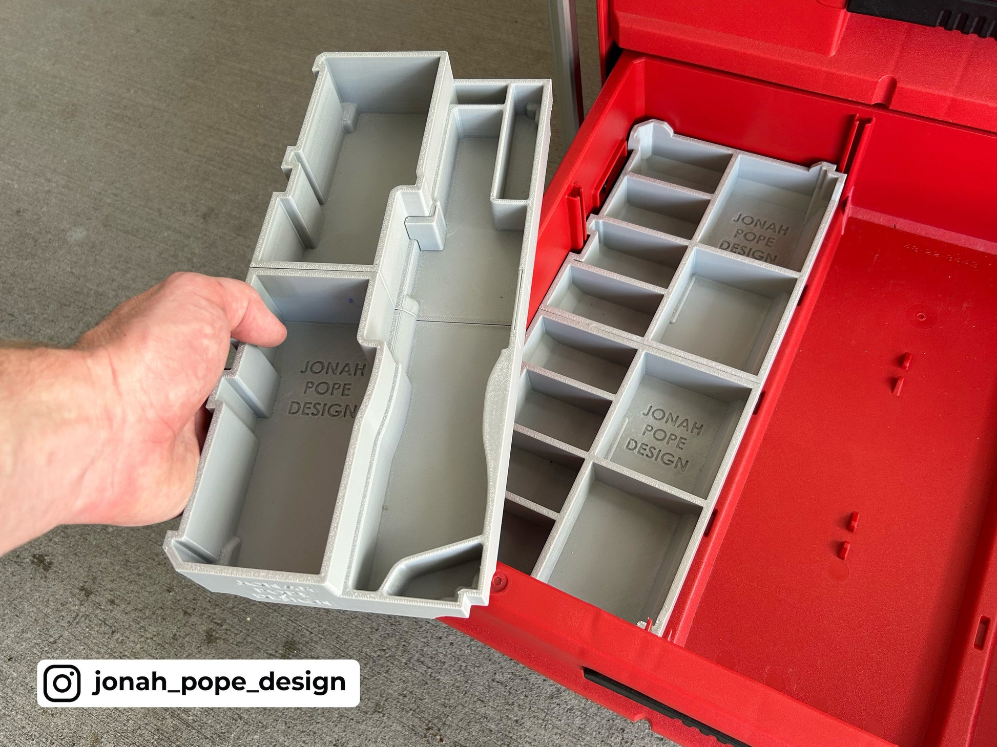 Stock Milwaukee Drawer Dividers - Since this is a fully custom contained storage system, there's no need for the stock Milwaukee Drawer Dividers. These dividers would waste space which would allow for expanded storage space inside the inserts. Please remember that you can't use these inserts and the stock dividers at the same time.