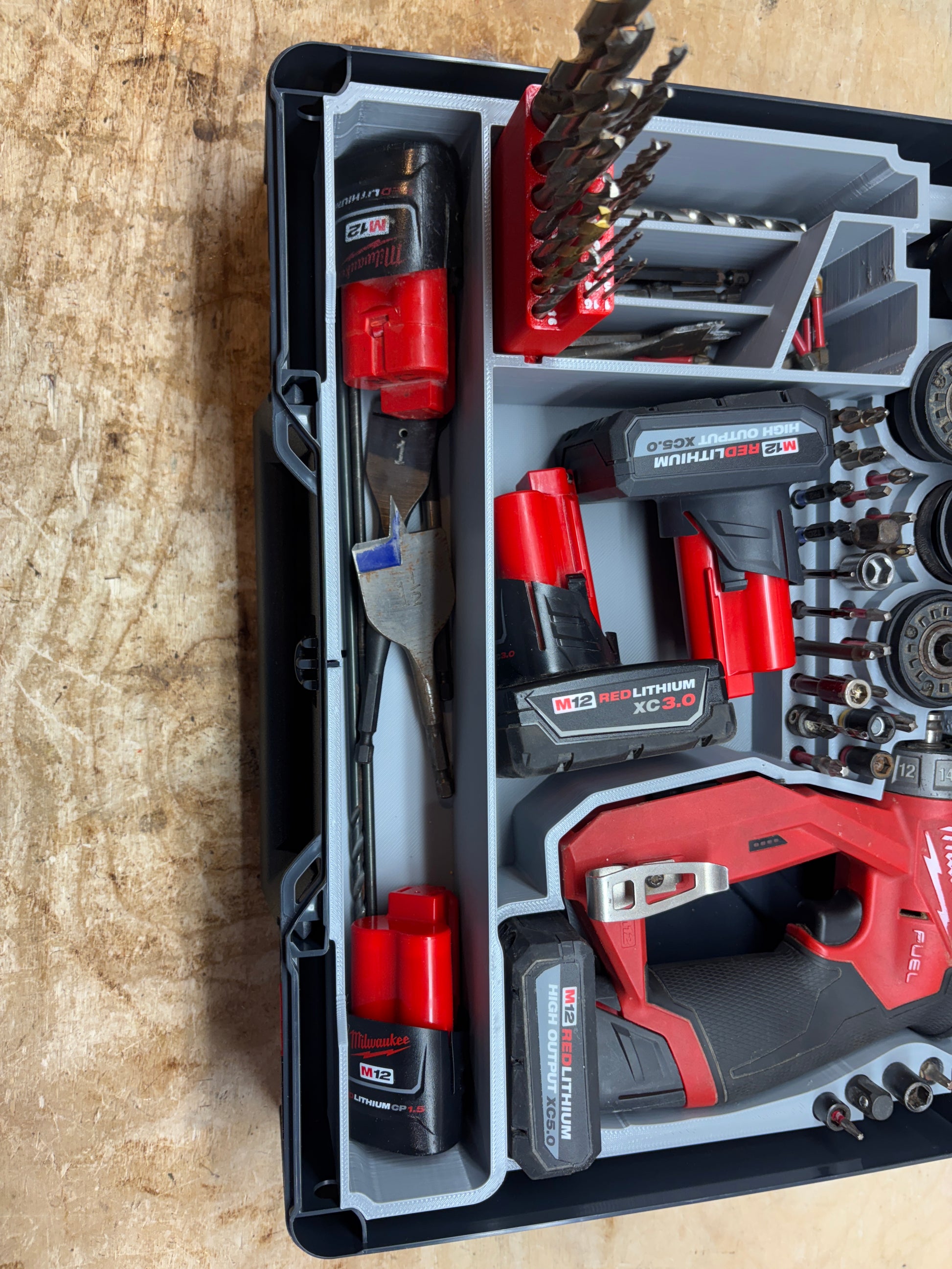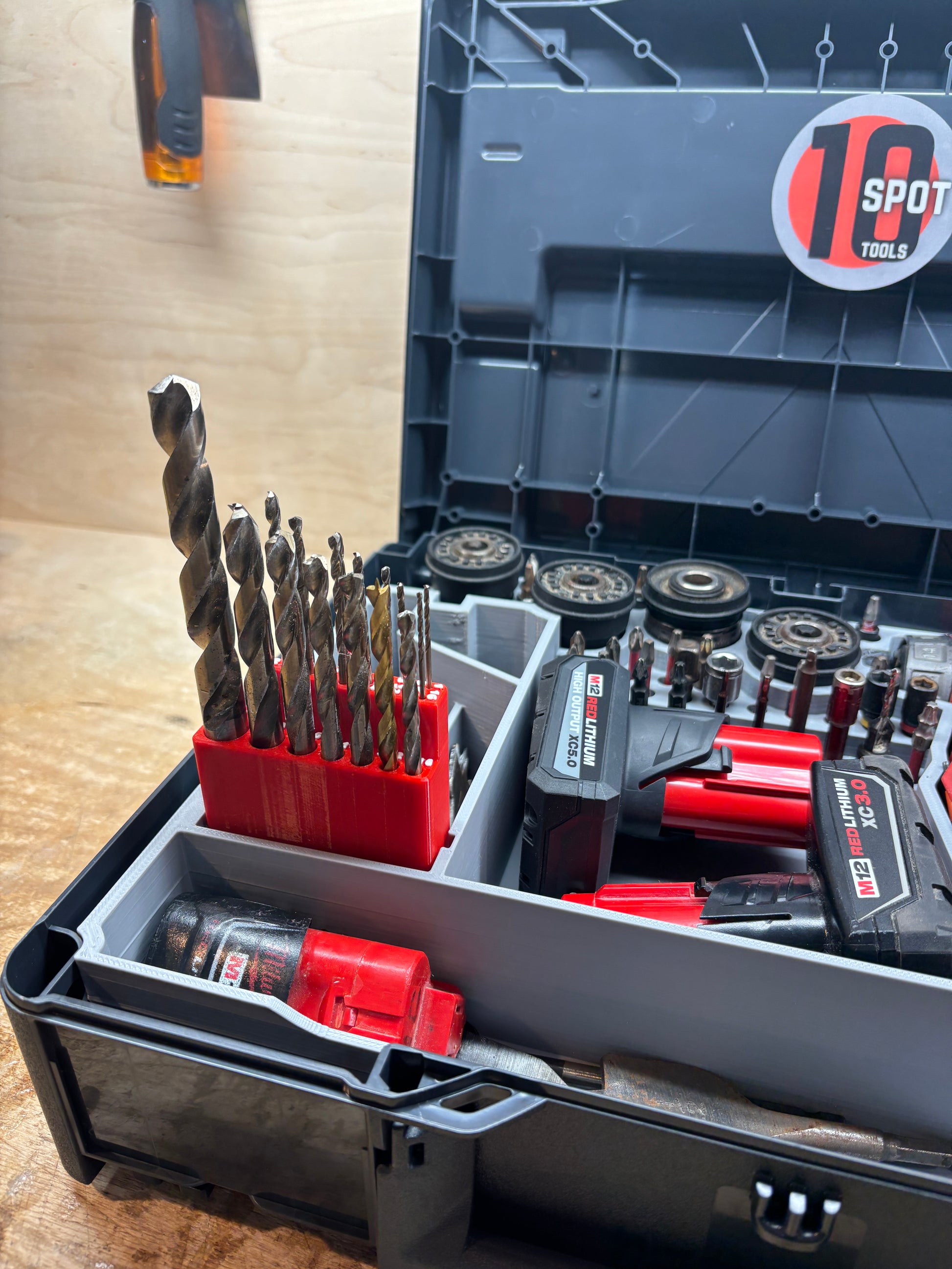 - 1 large open well 5"x5 3/8" (good for small bit cases)